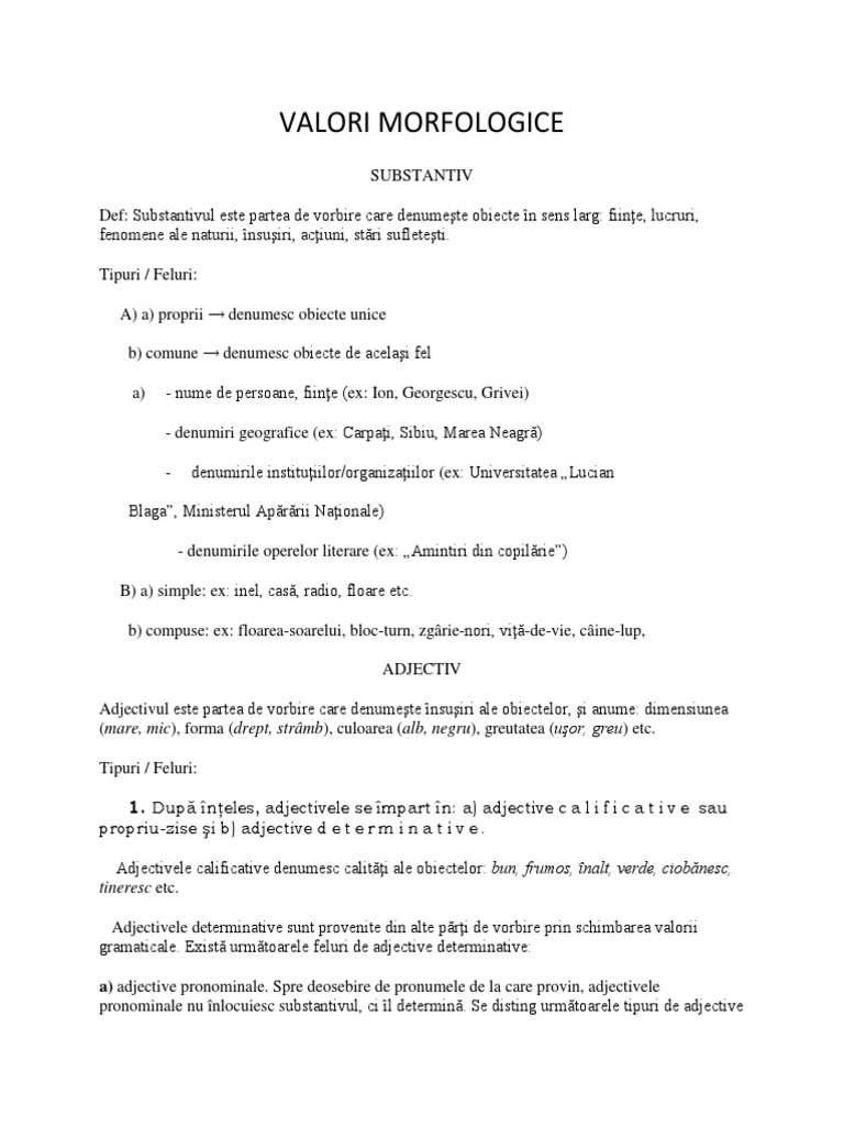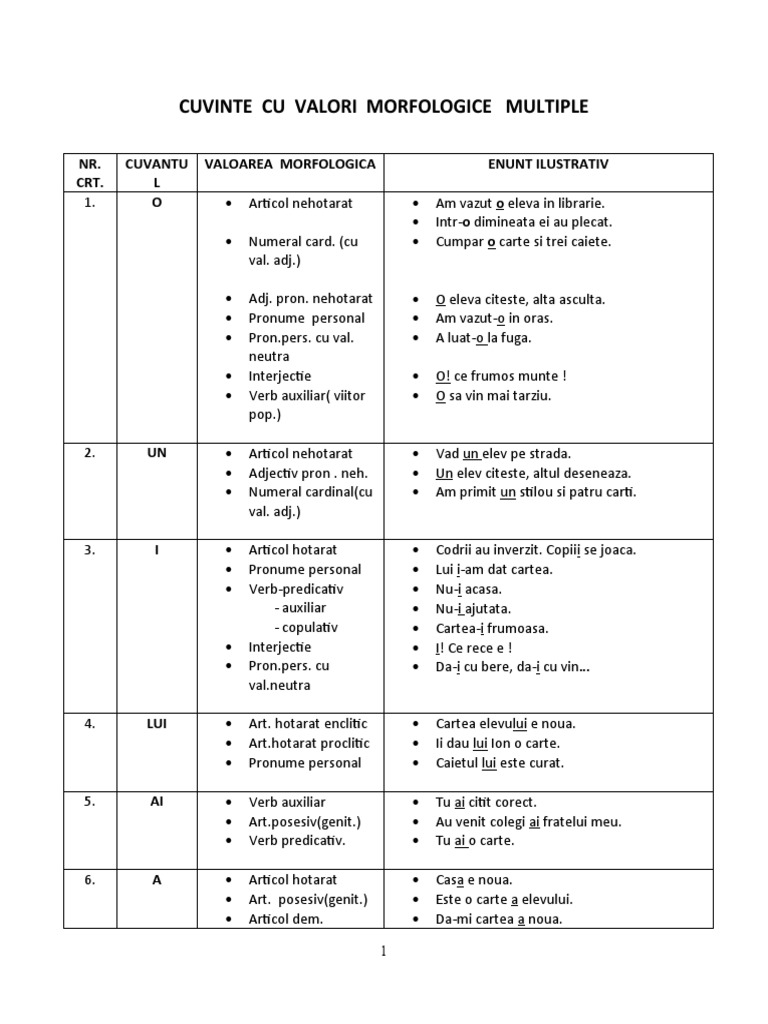Cuvinte Cu Valori Morfologice Multiple