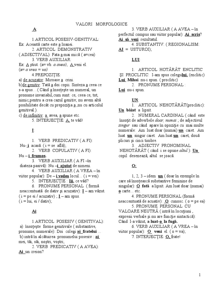 Doc Cuvinte Cu Valori Morfologice Multiple David Bucur Academia Edu