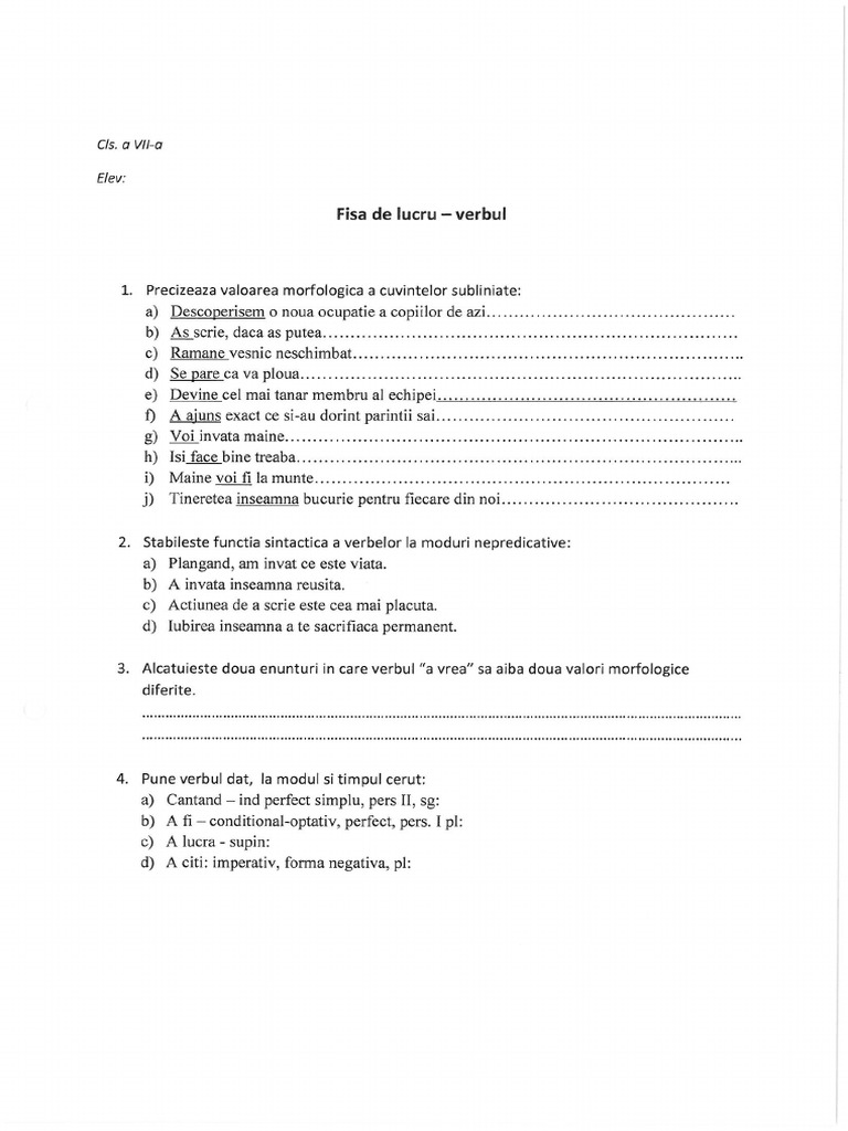 Valoarea Morfologica A Verbelor Subliniate Va Rog Mult Brainly Ro