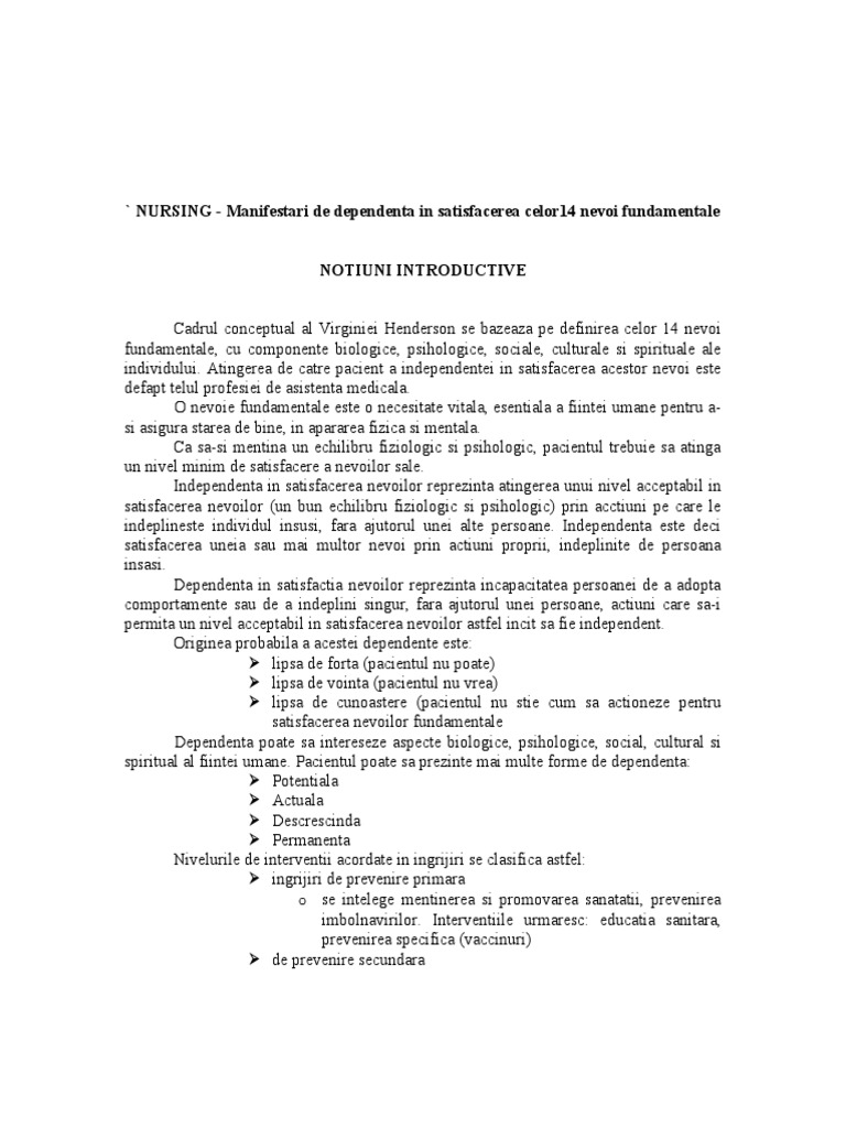 Cele 14 nevoi formeaza un tot. A elimina 2 2 2. A evita pericolele pericolele pot proveni din mediu. Cadrul conceptual al virginiei henderson se bazeaza pe definirea celor 14 nevoi fundamentale cu componente biologice psihologice sociale culturale si spirituale ale individului.