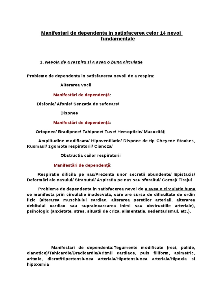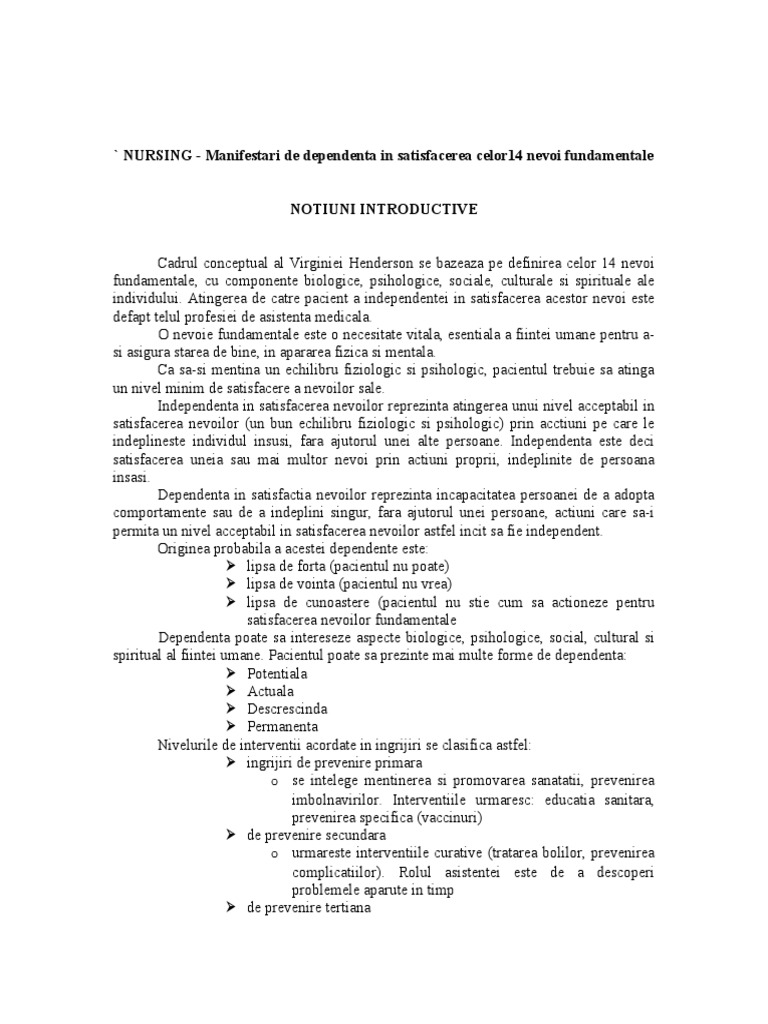 Referat Nursing Manifestari De Dependenta In Satisfacerea Celor 14 Nevoi Fundamentale Medicina 42736