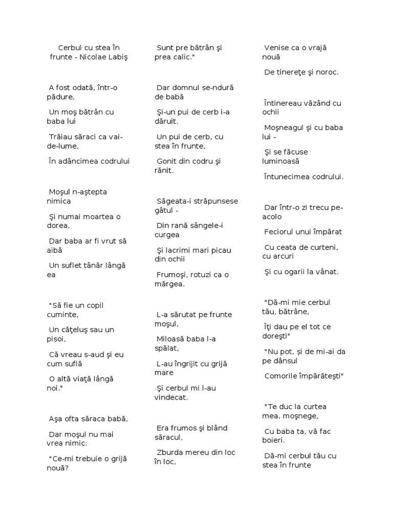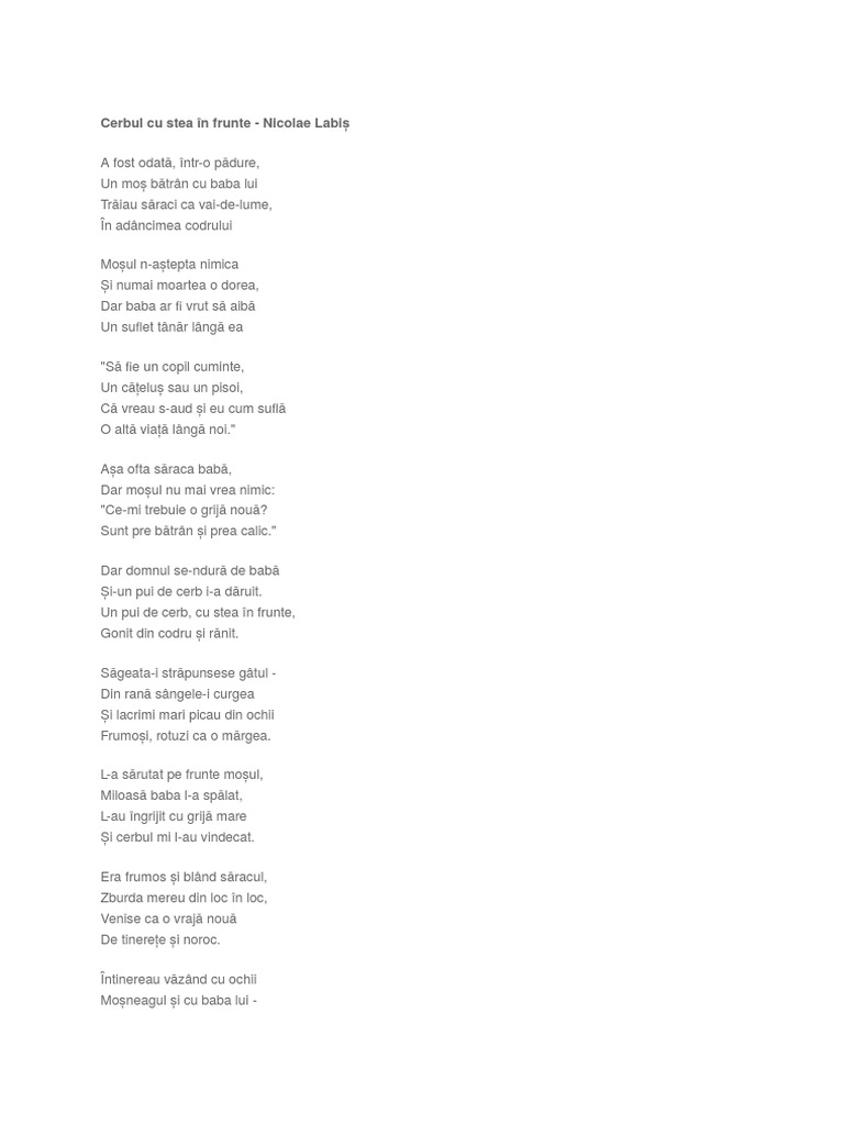 Cerbul Cu Stea In Frunte Poezii