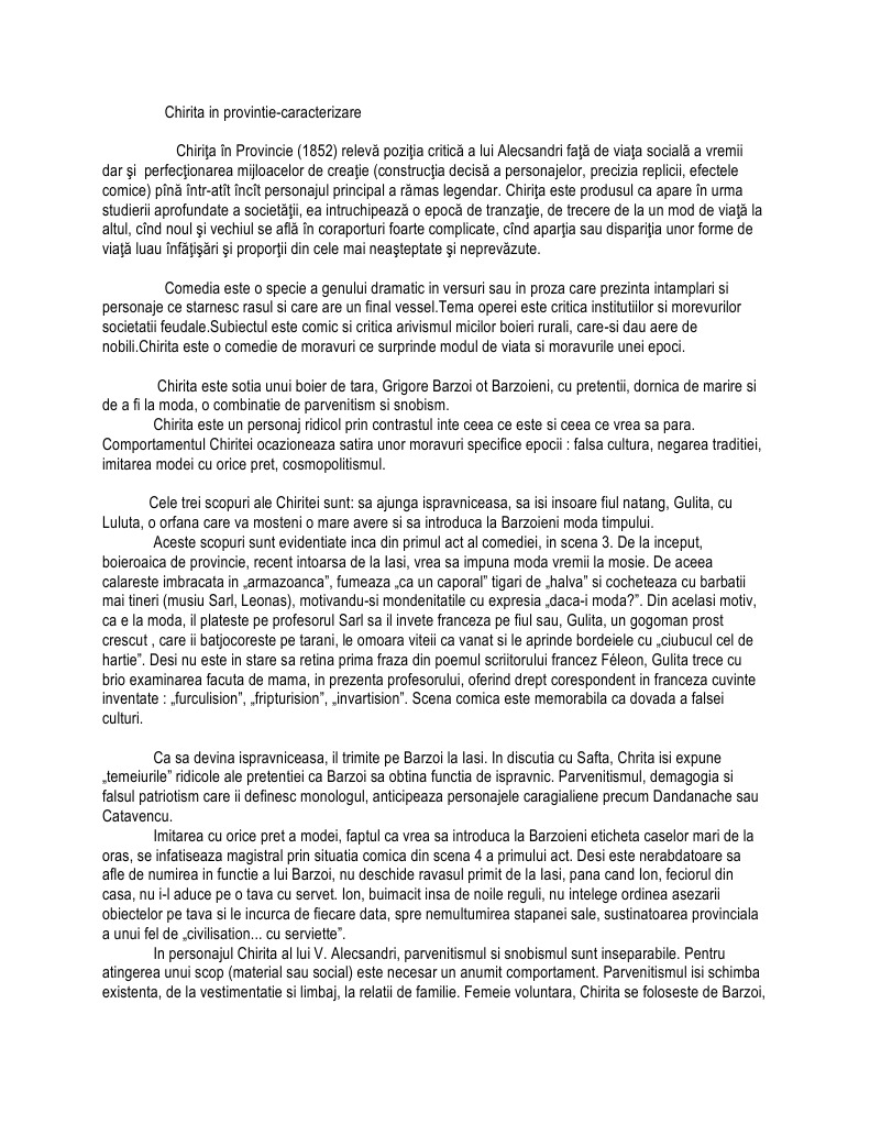 Caracterizare Chirita Chirita In Provintie