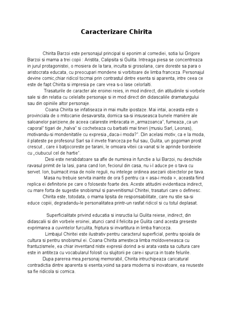Caracterizarea Lui Gulita Din Chirita In Provintie Pdf Document