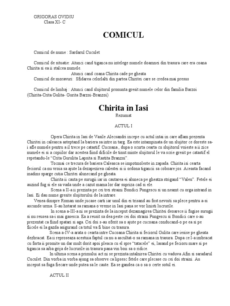Chirita in provintie rezumat pe acte. începu să l strige pe ion feciorul boieresc să vină să o dea jos de pe cal. Pentru a te ajuta să îți reamintești secvențele importante care se petrec de a lungul piesei de teatru chirița în provinție. Chirita in provincie rezumat pe acte vasile alecsandri mai jos o sa aveti mai multe rezultate pentru cautarea chirita in provincie rezumat pe acte vasile alecsandri. Chirița în provinție de vasile alecsandri rezumat chirita in provintie este o comedie de moravuri arivismul micilor boieri rurali in comedia chirita in provintie.