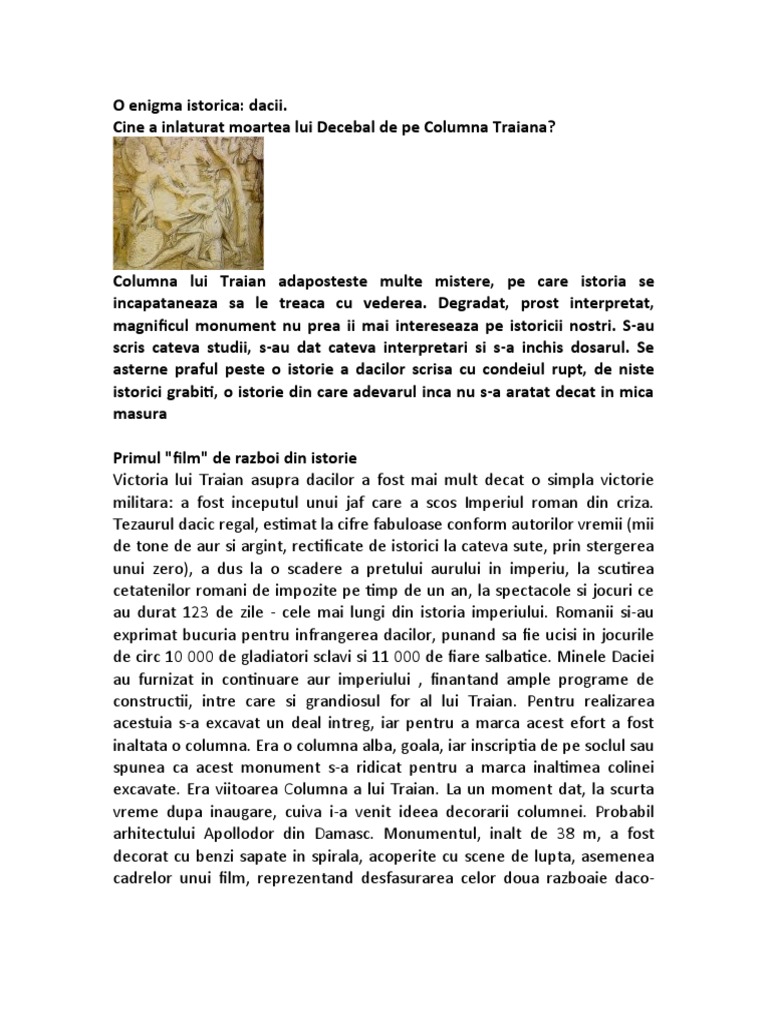 Cine A Inlaturat Moartea Lui Decebal De Pe Columna Traiana