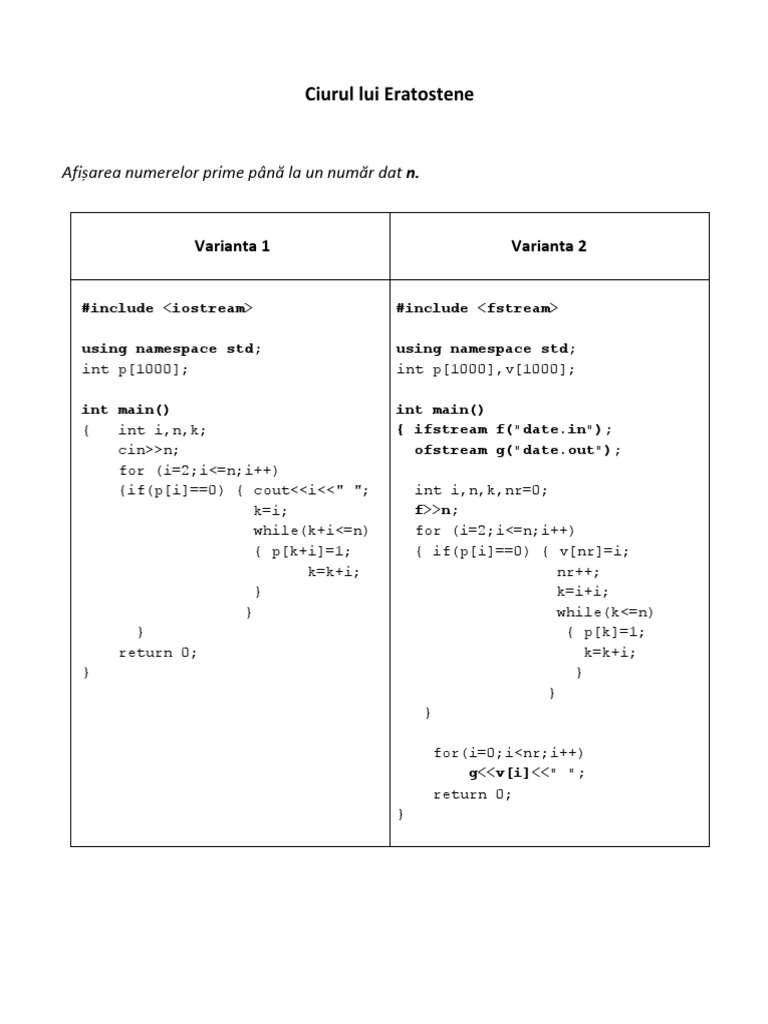 Ciurul Lui Eratostene Www Pbinfo Ro