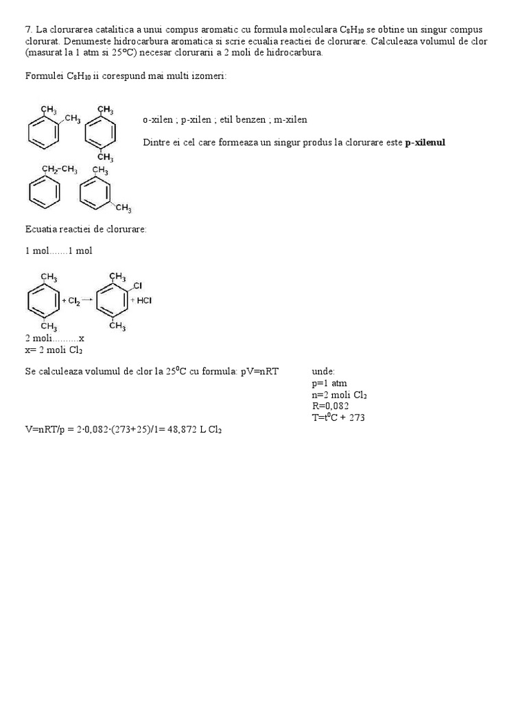 La Clorurarea Catalitica A Unui Compus Aromatic Cu Formula Moleculara C8h10 Se Obtine Un Singur Compus