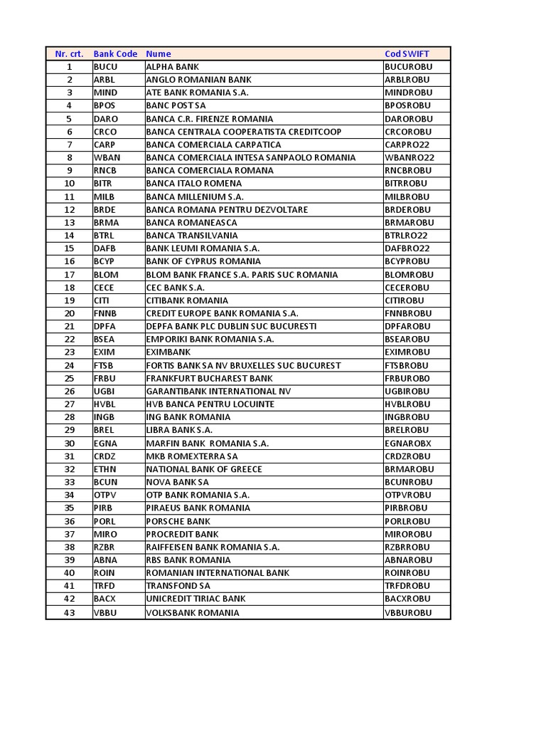 Swift Bic Codes In Romania Transferwise