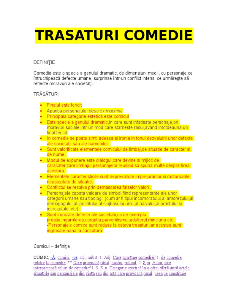 Fisa Comedia Definitie Si Trasaturi