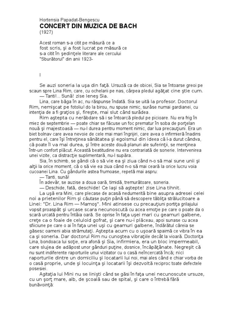 Concert Din Muzica De Bach Hortensia Papadat Bengescu Pdf Free Download