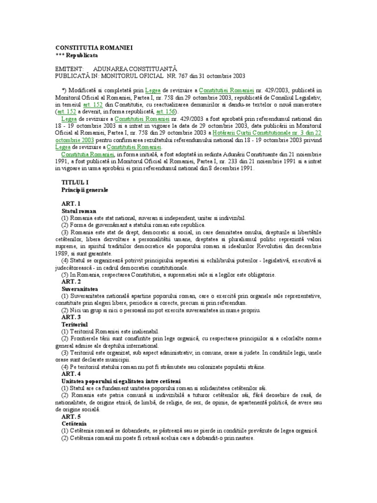 Constitutia Romaniei Actualizata La Zi Constituția Romaniei