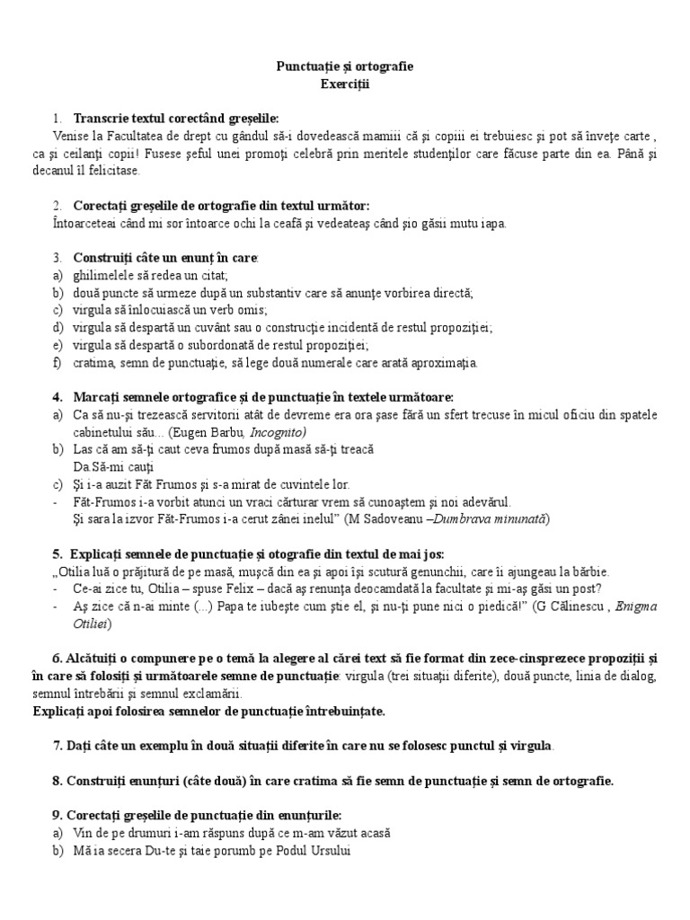 1 Exercitii Punctuatie Si Ortografie